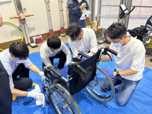 山梨県立あけぼの医療福祉センター成人寮にて、「JSA中核会山梨支部」・「AIRオートクラブ山梨支部」合同で『車椅子清掃・整備』のボランティア活動に参加しました。