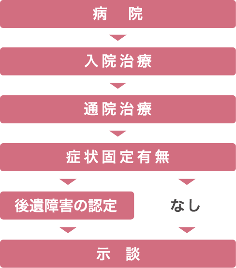 ●治療終了・・・・精神的損害・休業損害など認定後、保険により支払い